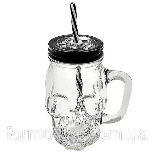Банка-кружка с крышкой и трубочкой "Череп" 500мл