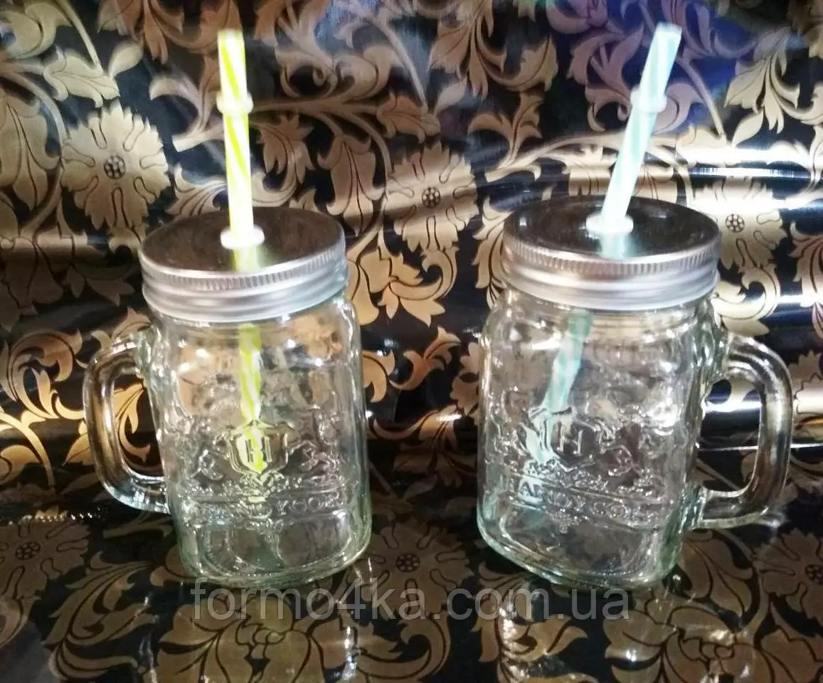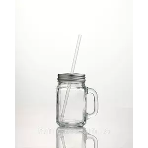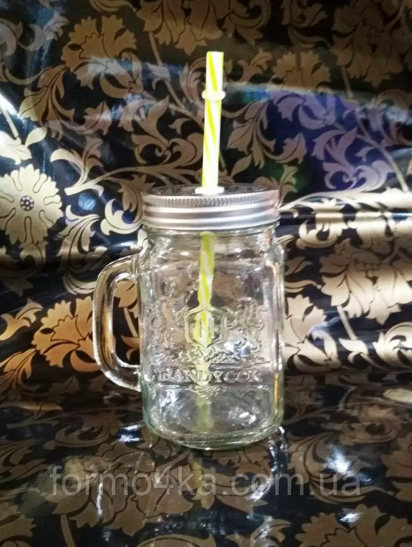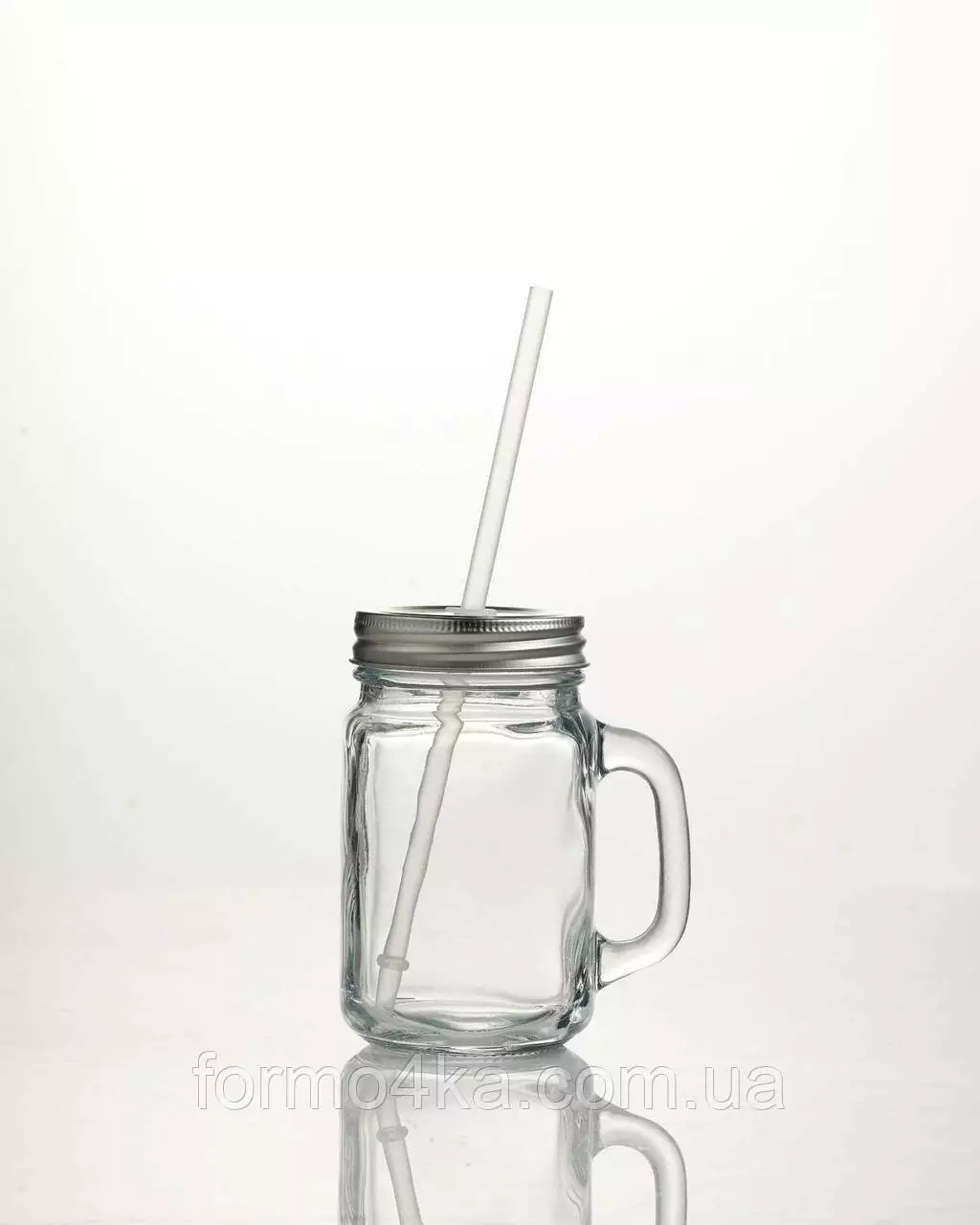 Банка-кружка с крышкой и трубочкой для напитков 450мл
