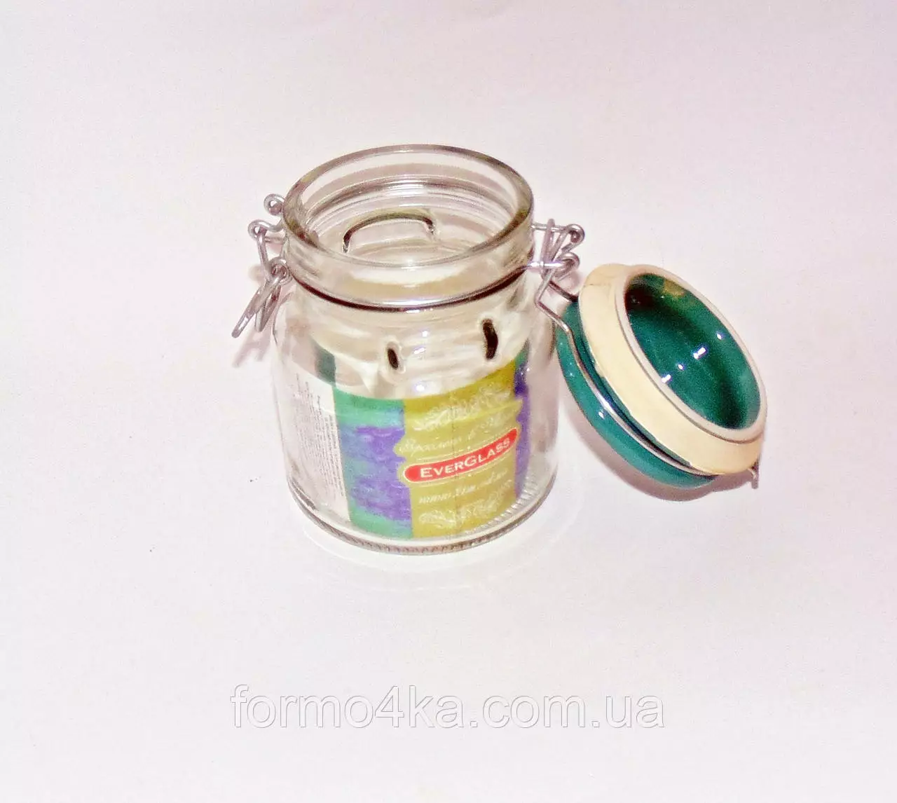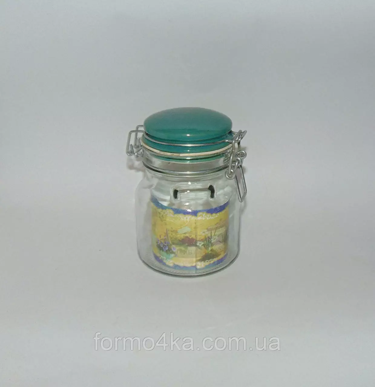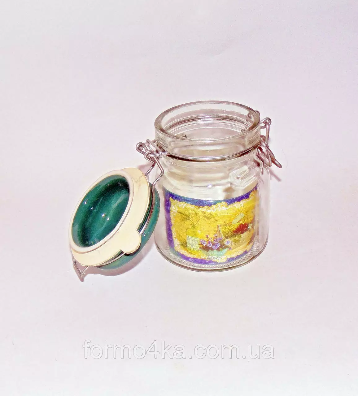 Банка стеклянная 550 мл с керамической цветной крышкой с бугельным