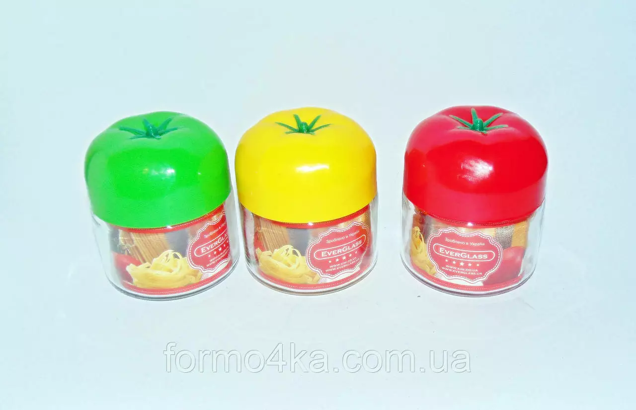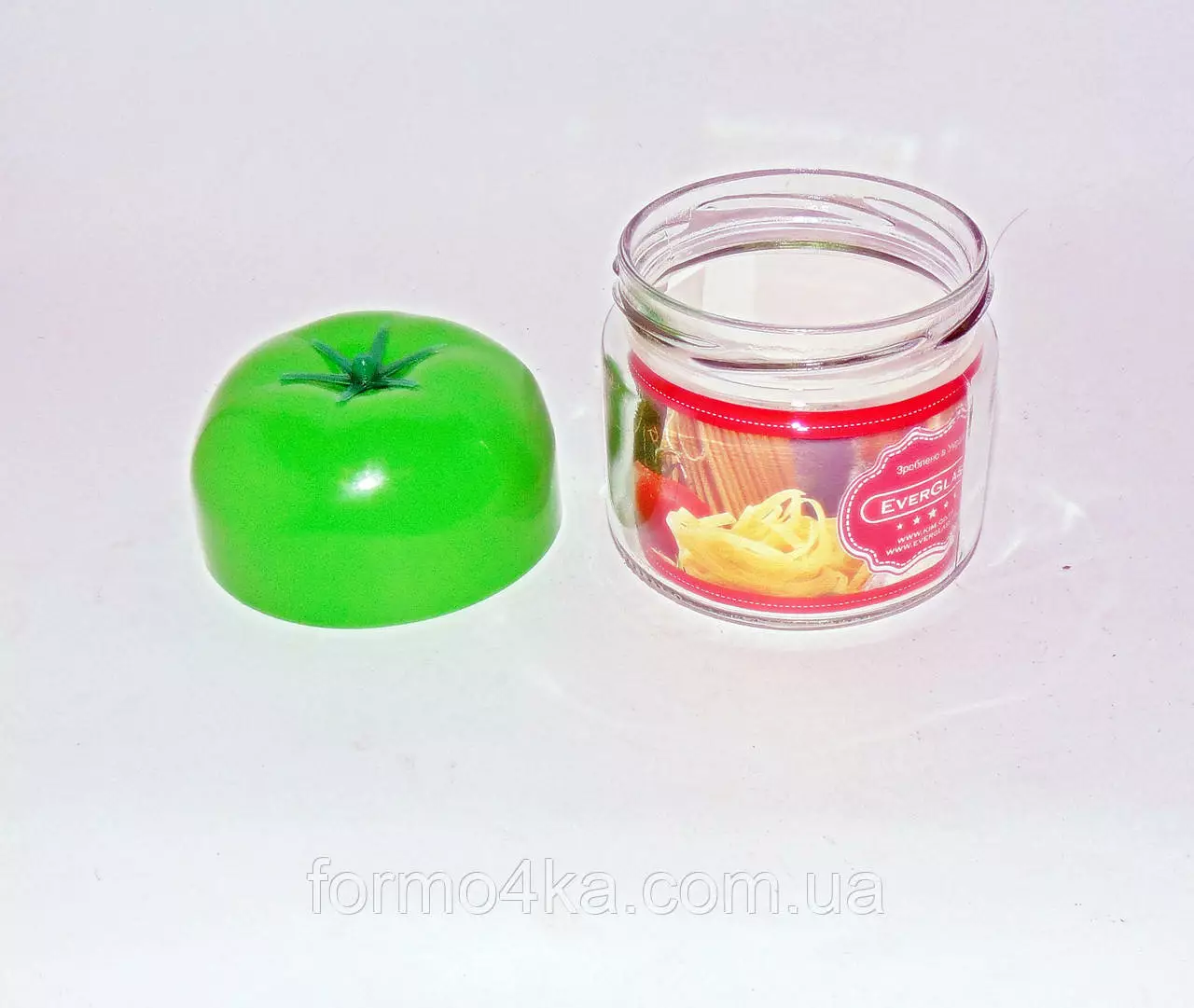 Банка стеклянная с пластиковой крышкой в форме помидора 280 мл
