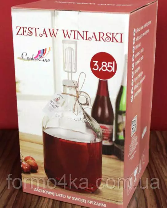 В набор входит: бутыль 3.85л пробка с гидрозатвором подарочная упаковка