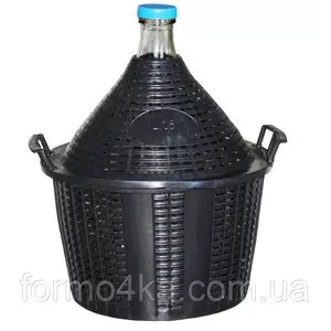 Бутыль стеклянный с узким горлом в пластиковой корзине 15л