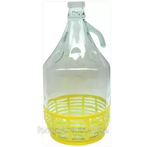 Бутылка 5л с ручкой и пластмасовой пробкой в корзине