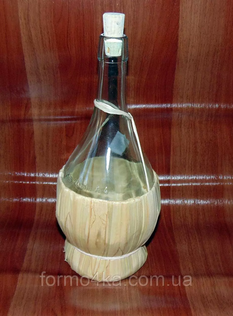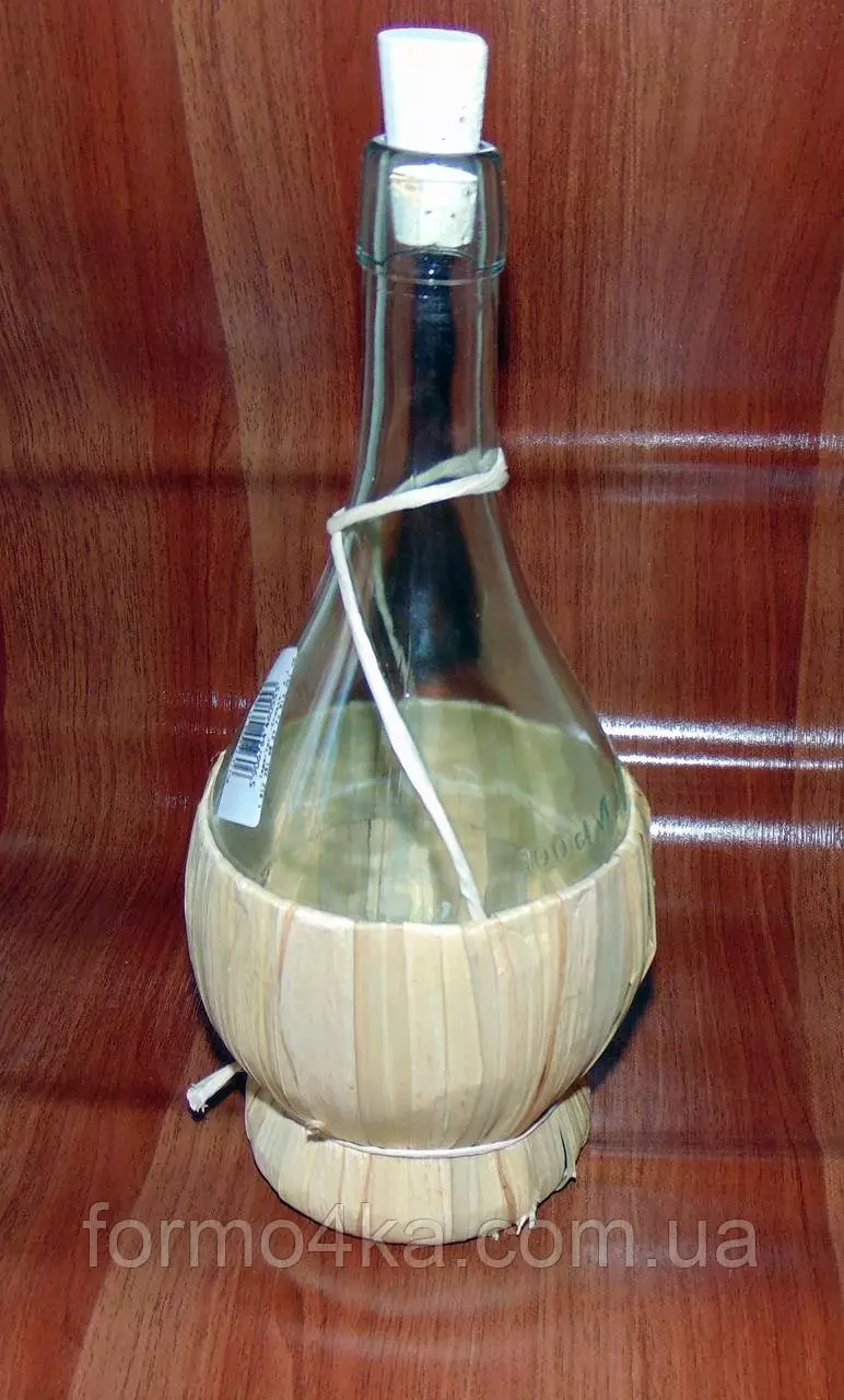Бутылка стеклянная оплетенная соломой 1л с пробкой
