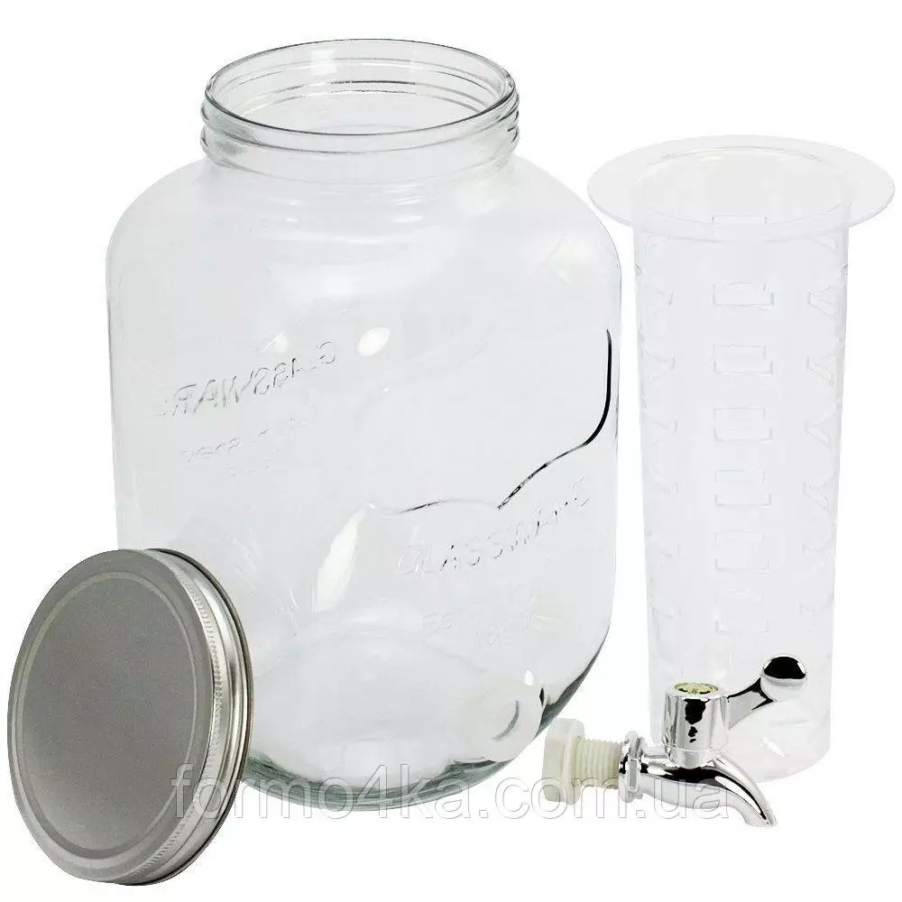 Банка комплектуется металлической крышкой и пластмассовым краном.
