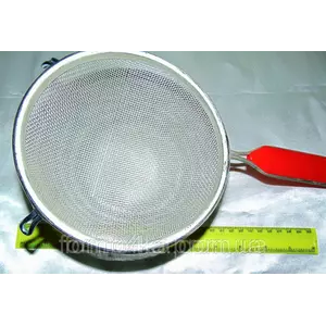 Дуршлаг металлический с пластмассовой ручкой красного цвета