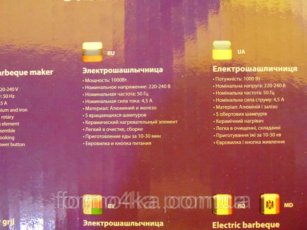 Частота вращения шампуров: 2 об/мин
