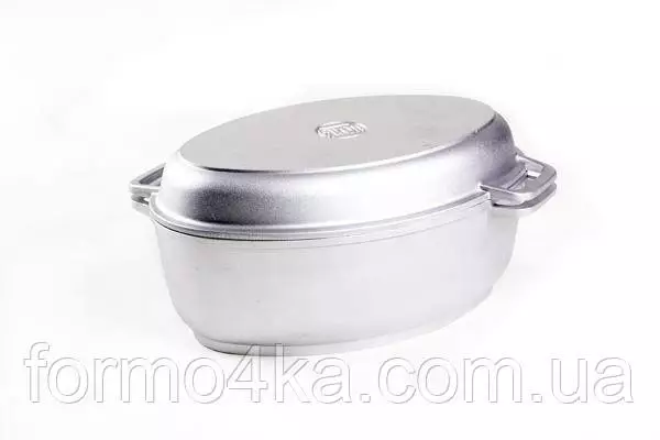 Гусятница 2,5 л + сковорода-гриль овальной формы, высота 140 мм, толщина дна 6 мм, толщина стенок 3,3 мм