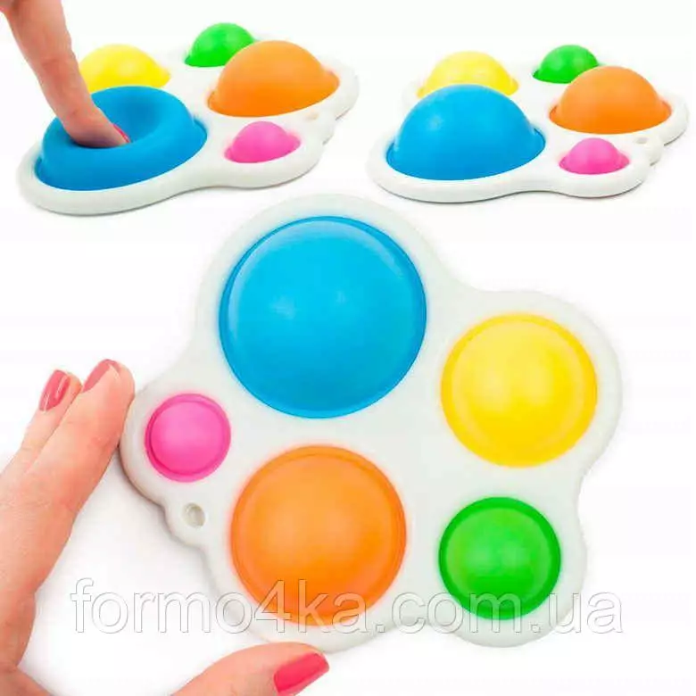 Simple Dimple – уникальная развивающая игрушка. Она невероятно проста, но ни один маленький пальчик еще не устоял перед этими разноцветными пузырями! Игрушка очень простая и понятная, и в то же время невероятно занимательная.