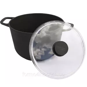 Кастрюля чугунная 3 литра со стеклянной крышкой