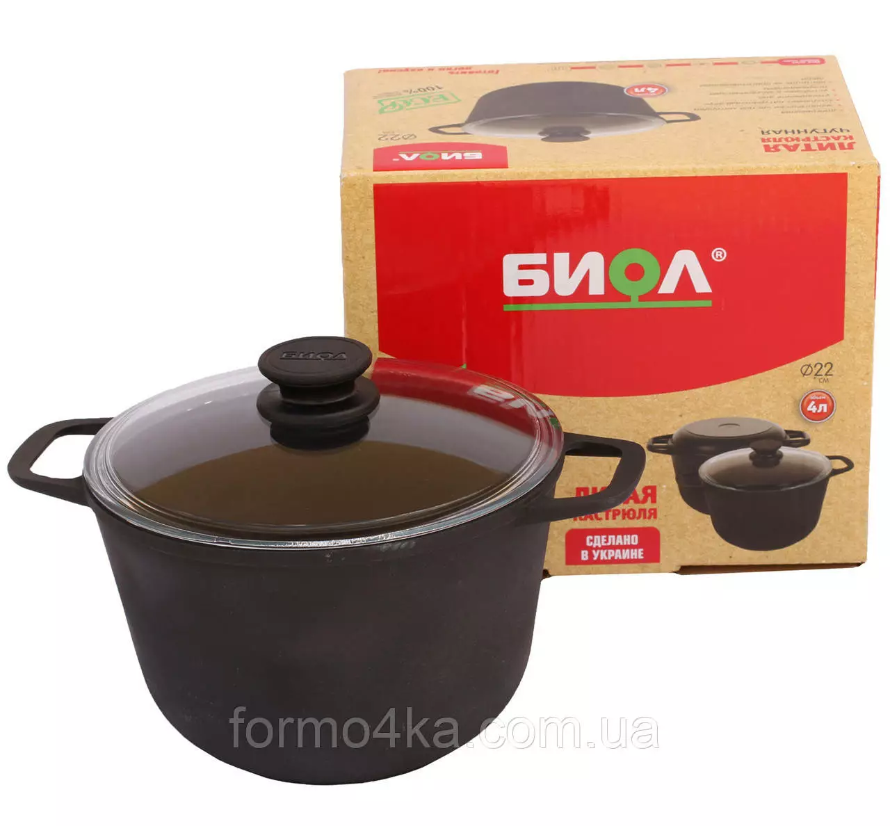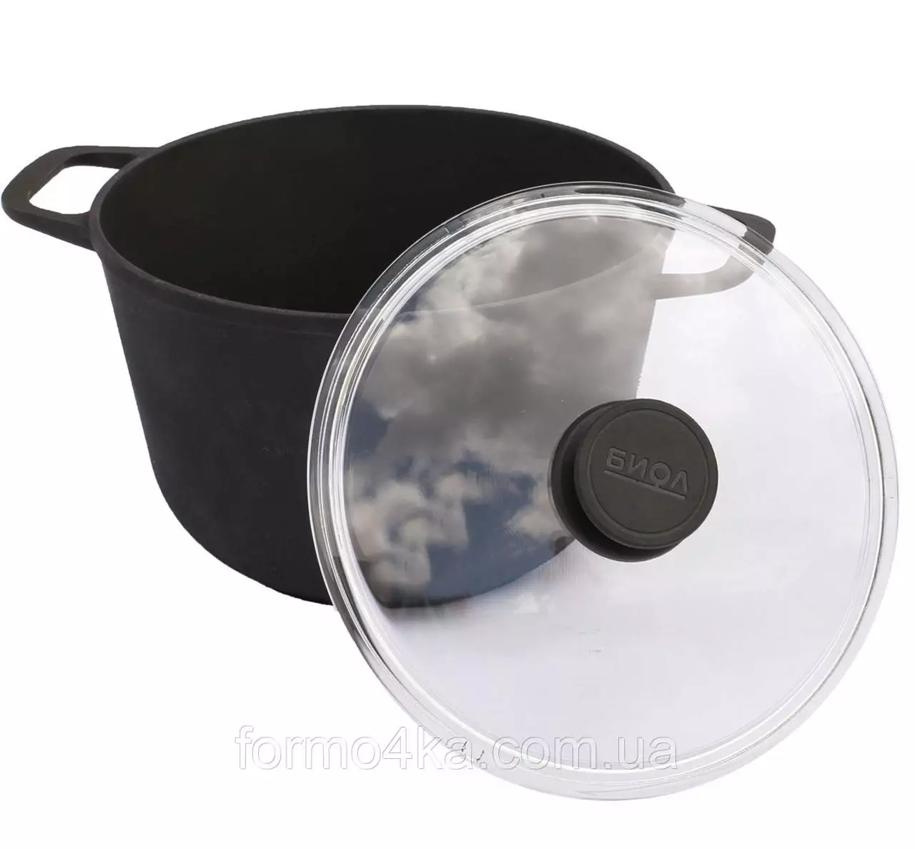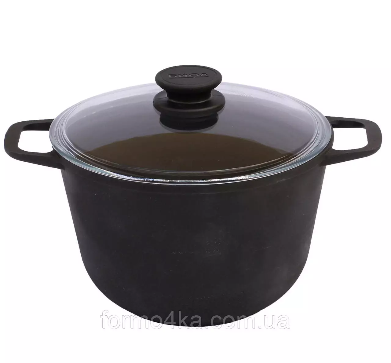 Кастрюля чугунная 4 литра со стеклянной крышкой