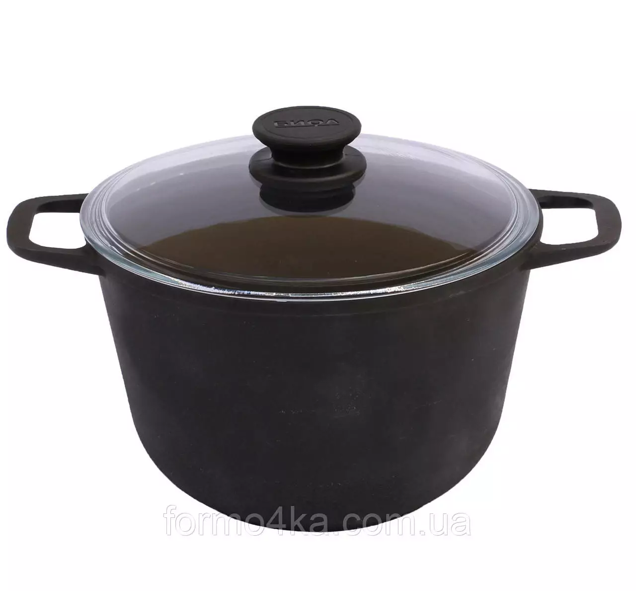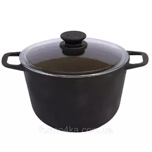 Кастрюля чугунная 6 литров со стеклянной крышкой