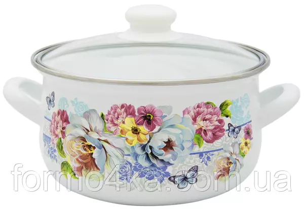 Кастрюля эмалированная Interos Розовый мрамор 3л