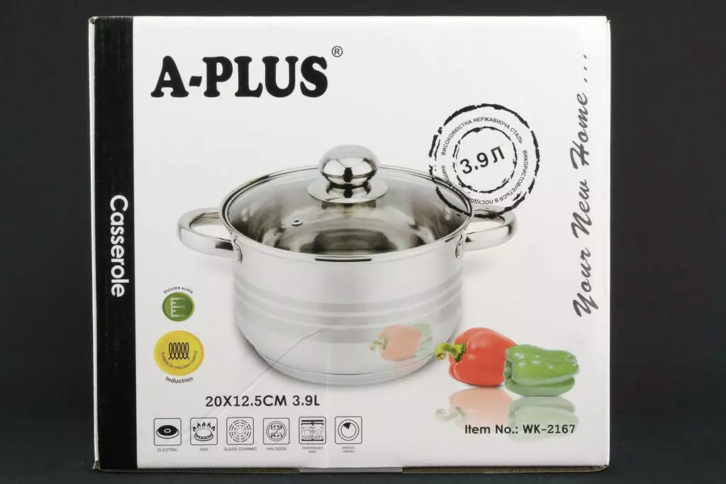 Размер кастрюли: объем - 3,9л(до края). диаметр - 20см, высота 12,5см
