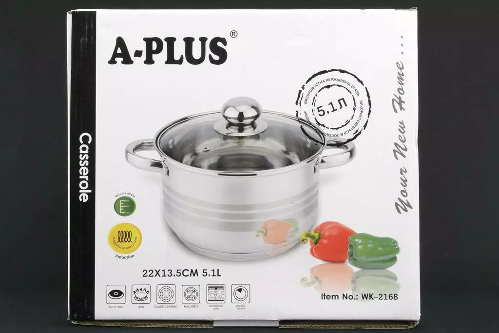 Размер кастрюли: объем - 5,1л(до края). диаметр - 22см, высота 13,5см