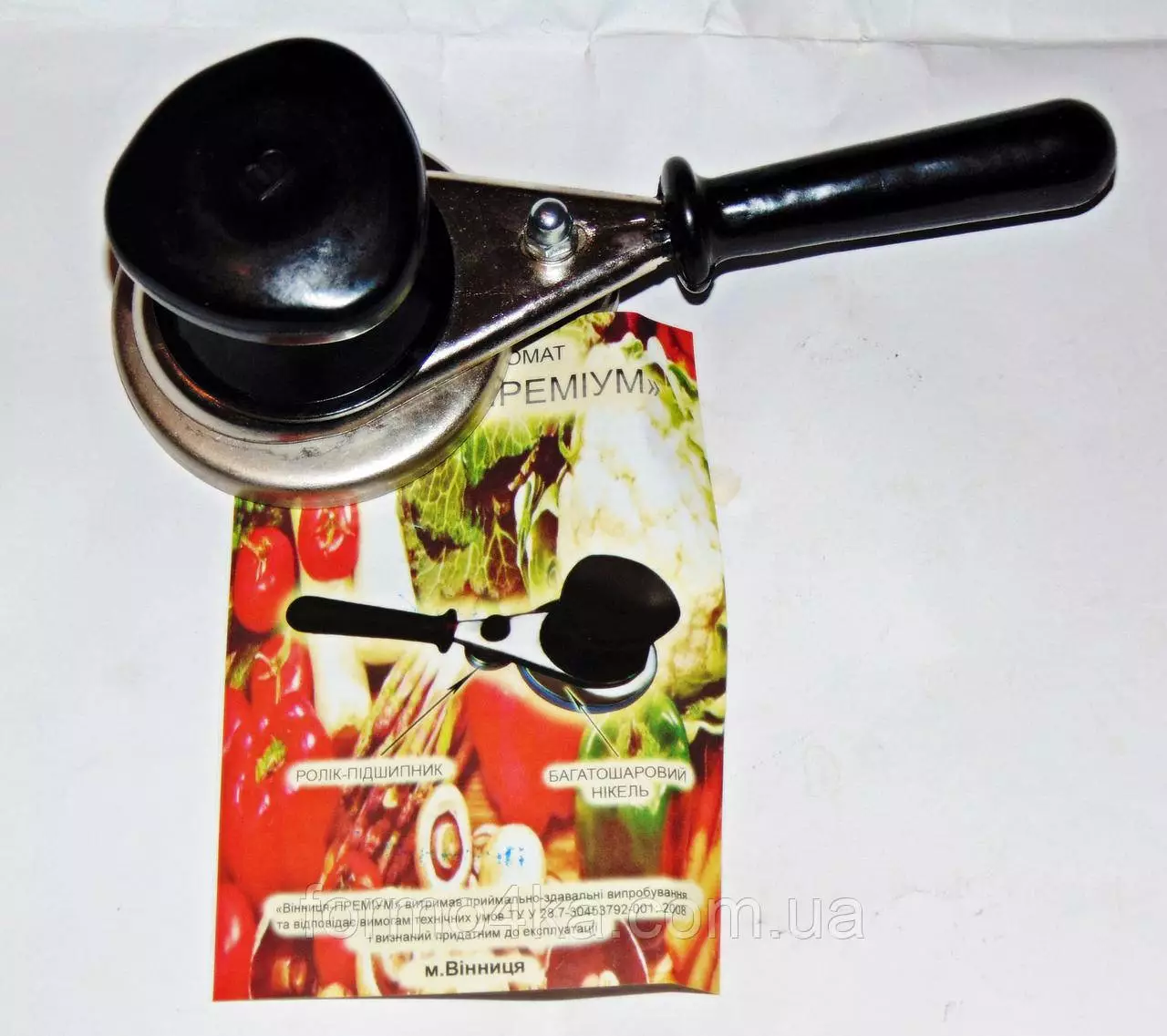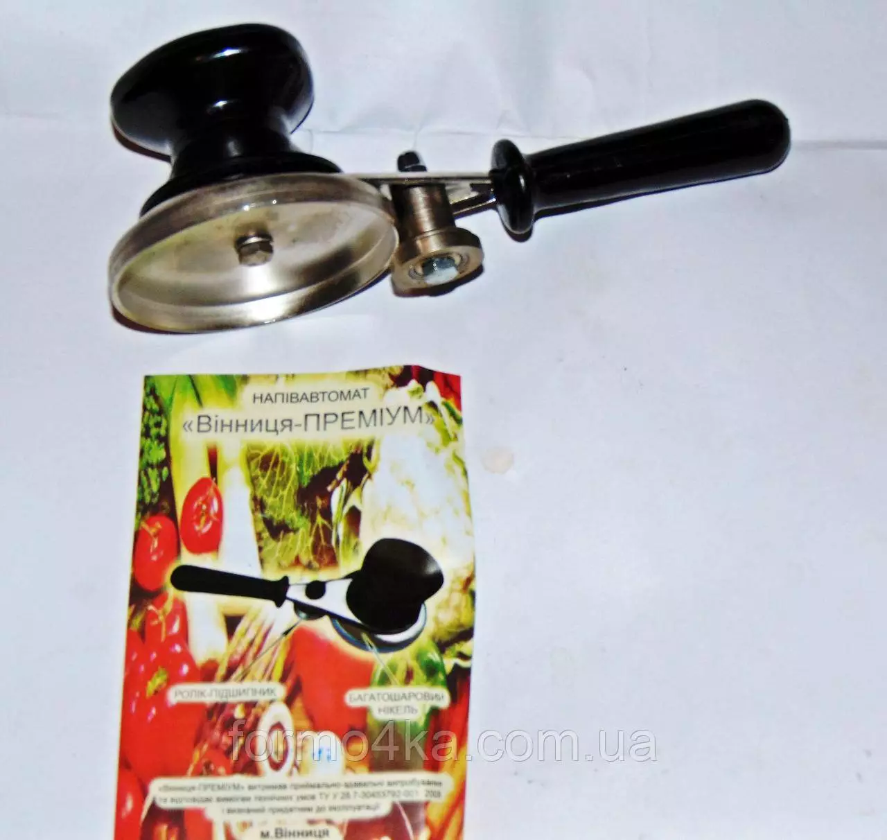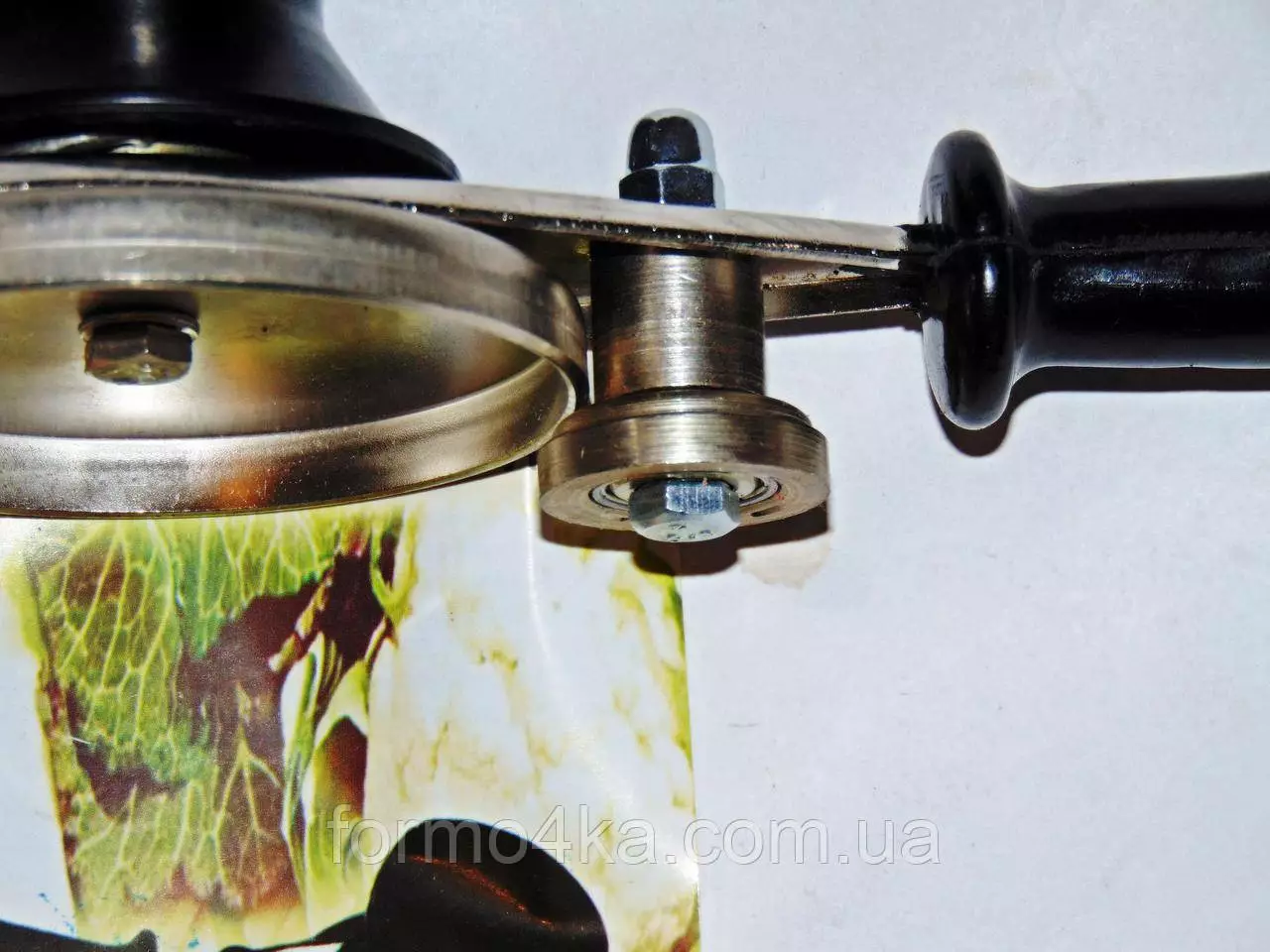 Машинка закаточная (ключ для консервации) с полуавтоматическим перемещением ролика-подшипника предназначена для герметической закатки стеклянных банок в домашнем консервировании. Благодаря правильному выбору выходной позиции ролика и ограничению его перемещения исключается раздавливание горловины банки даже если банка находится в неопытных руках. В зависимости от банки или крышки для закрытия нужно сделать 7-9 оборотов до упора по часовой стрелке. Детали машинки изготовлены из углеродистой стали и имеют защитное гикеоированное покрытие .