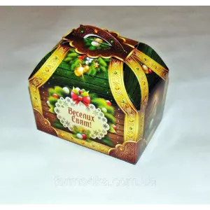 Новогодняя коробка-упаковка на любимые сладости для детей. Хороший принт, яркие насыщенные цвета, вместительная, с двух сторон имеет разные рисуночки, чем и интересна для детей. Ее только остается наполнить любимым лакомством, конфетами, сладостями.