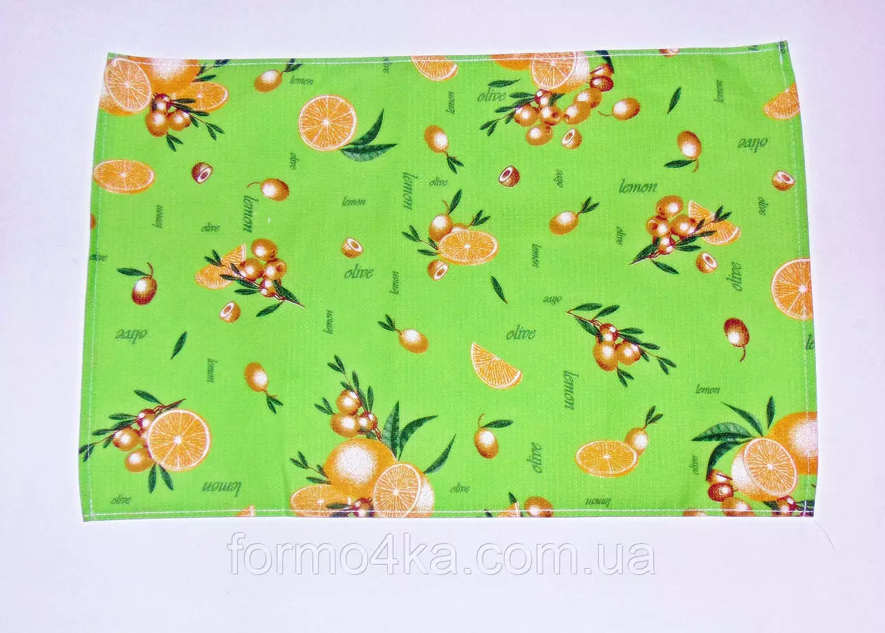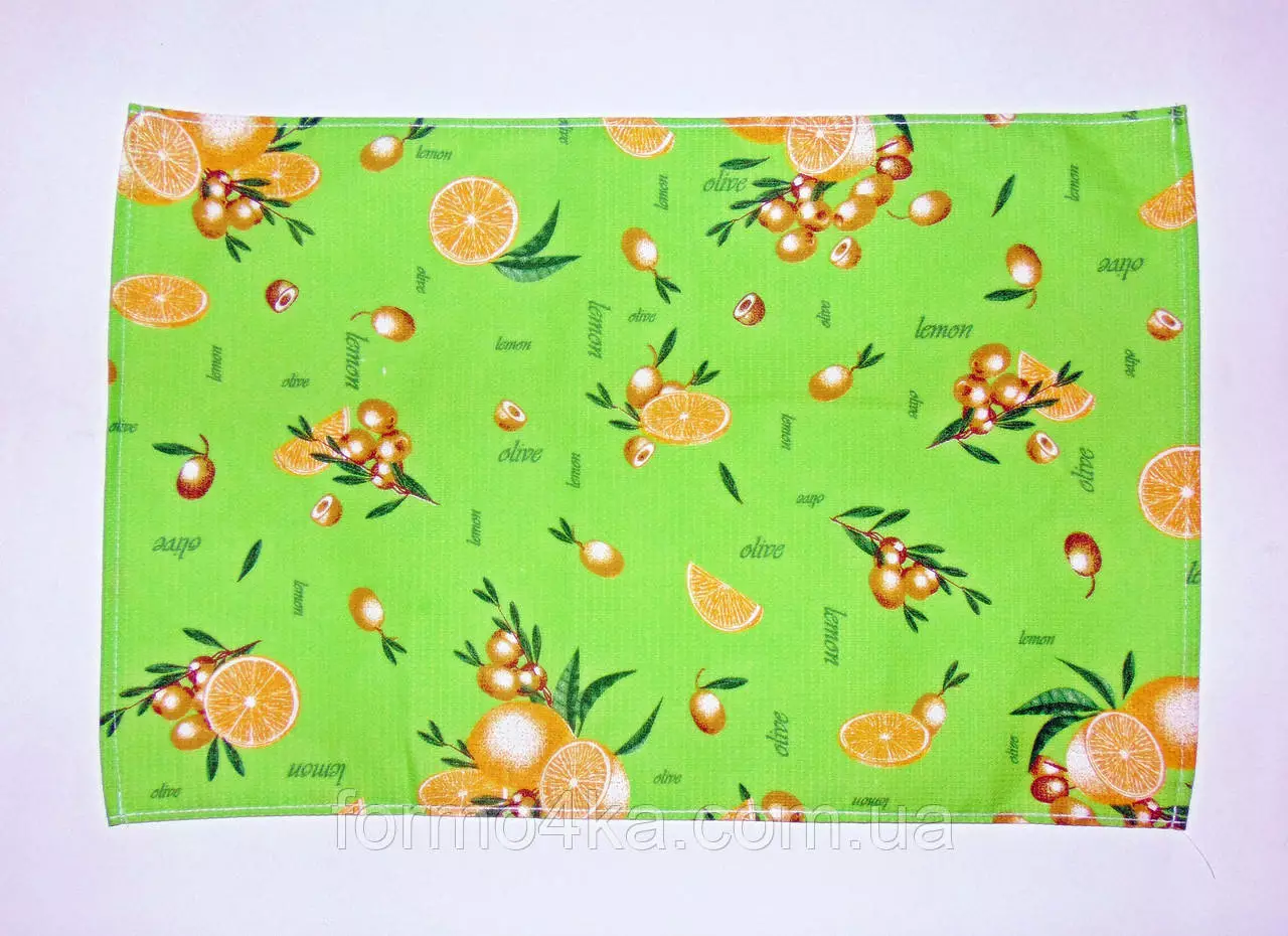 Кухонное вафельное полотенце "лимон-оливки"салат 55х35см