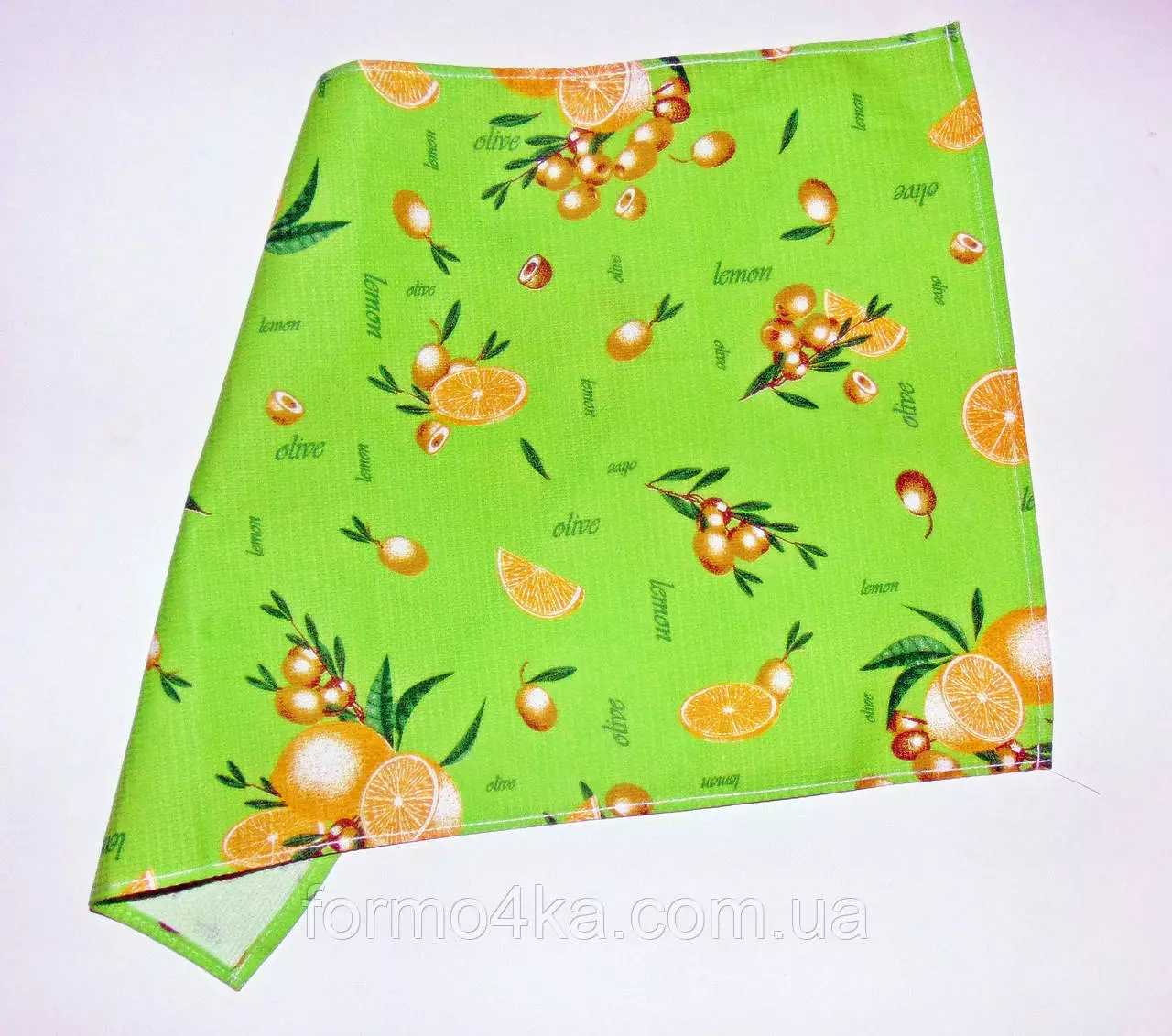 Кухонное вафельное полотенце "лимон-оливки" салатовое 55х35см