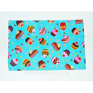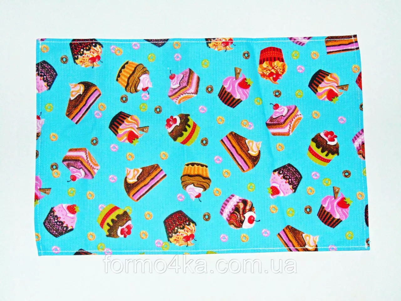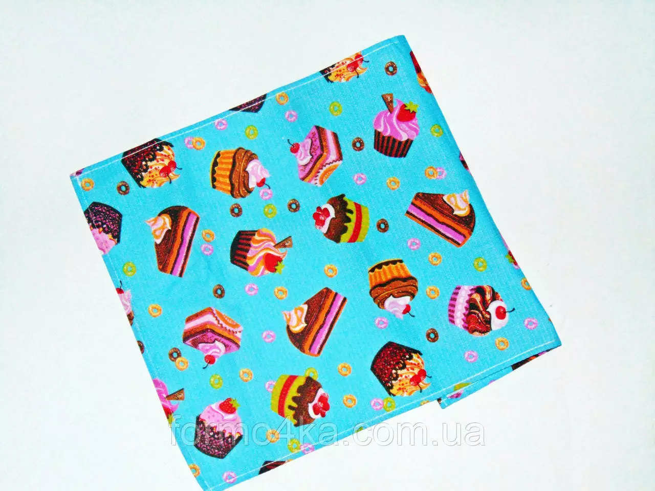 Кухонное вафельное полотенце "тортики" голубое 55х35см