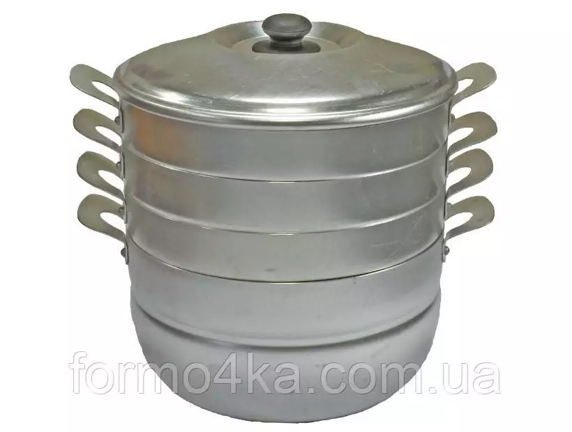 Мантоварка - кастрюля со съемными сетками или дисками для приготовления мантов, а также любой другой пищи на пару. Оригинальная конструкция мантоварки позволяет сохранить витамины и незаменима для людей, которым требуется диетическое питание и особые условия приготовления пищи. Легкая, прочная и практичная посуда изготовлена из пищевого алюминия. Алюминиевая посуда обладает повышенной стойкостью к коррозии, быстро и равномерно нагревается и не требует сложного ухода. Посуда пригодна для использования на газовых плитах, на керамических плитах, на электрических плитах. Посуда пригодна для мойки в посудомоечной машине.