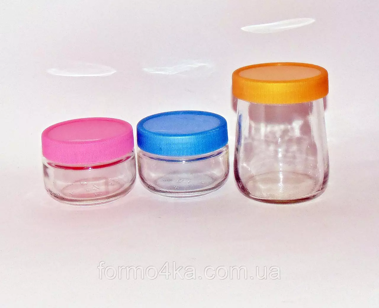 Банки стеклянные круглой формы с пластиковой винтовой крышкой