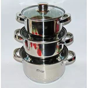 Набор кухонной посуды 6пр 1,5, 2 и 3л Набор кастрюль 6пр 1,5, 2 и 3л Edenberg EB-3733