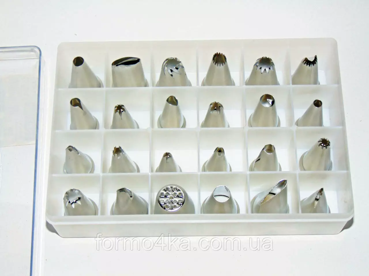24 разных насадок из нержавеющей стали в пластиковой коробке с прозрачной крышкой