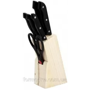 Ножи выполнены из нержавеющей стали с пластиковыми рукоятками черного цвета