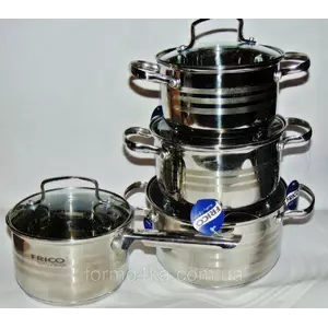 Набор кастрюль 3 штуки и ковшик со стеклянными крышками