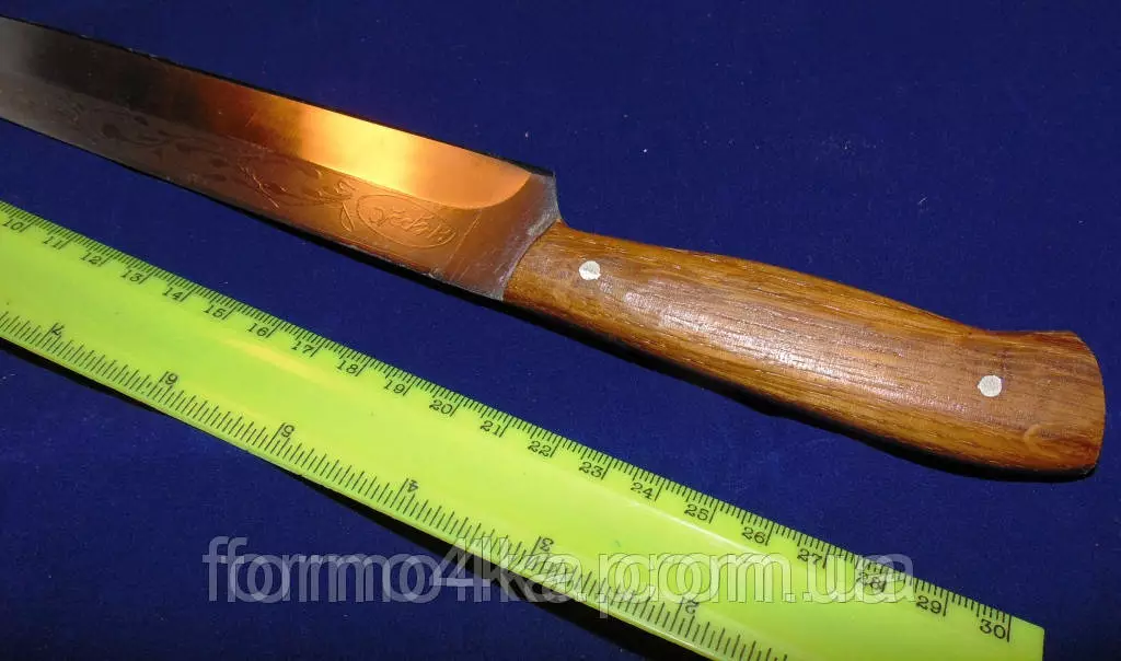 Рукоятки ножей выполнены из древесины твёрдых пород - дуба, бука. Такая рукоять не скользит в руке и служит десятки лет, преодолевая самые разнообразные испытания. Благодаря специальной водоотталкивающей обработке, рукоять сохраняет первоначальный внешний вид даже после длительного нахождения в воде.