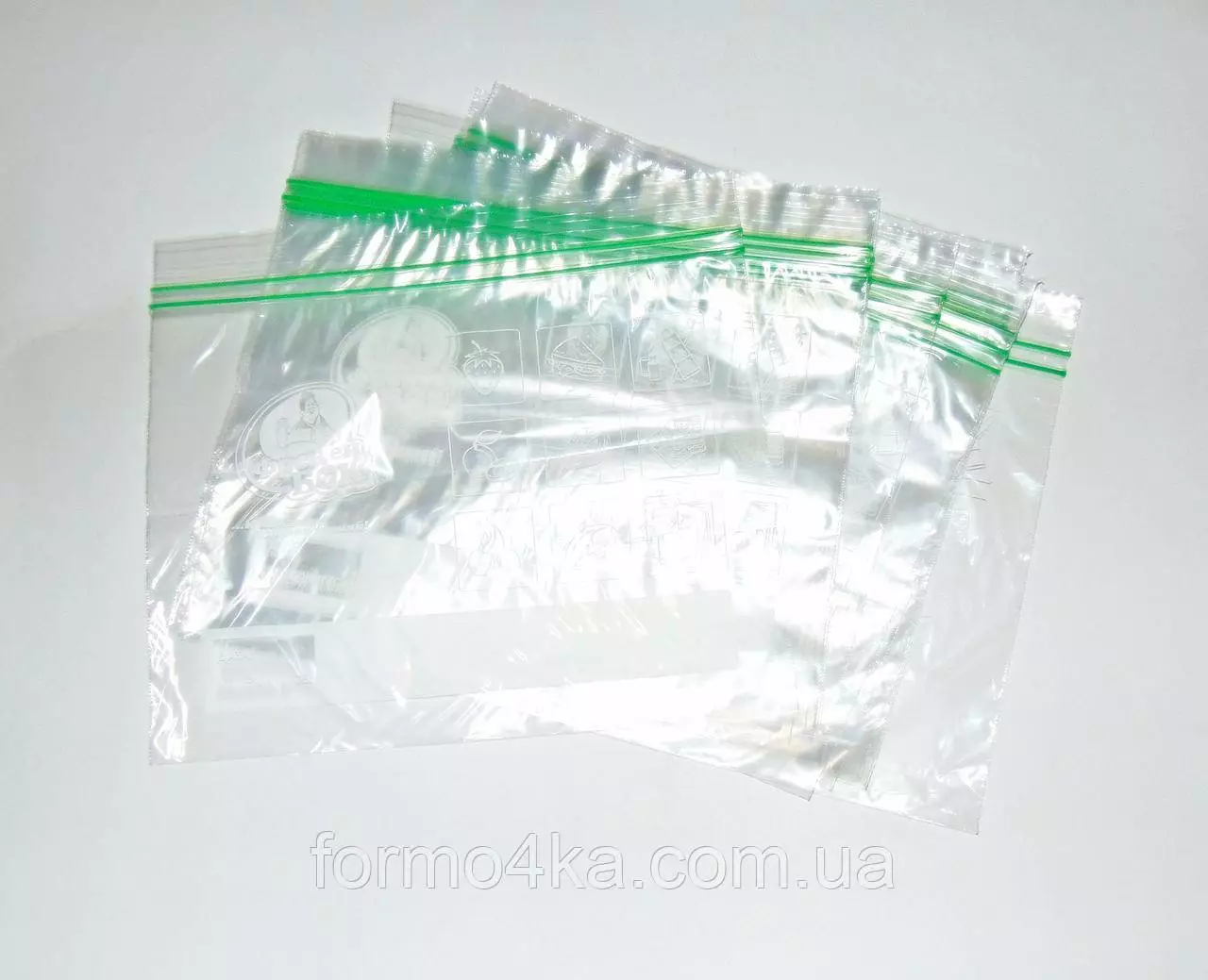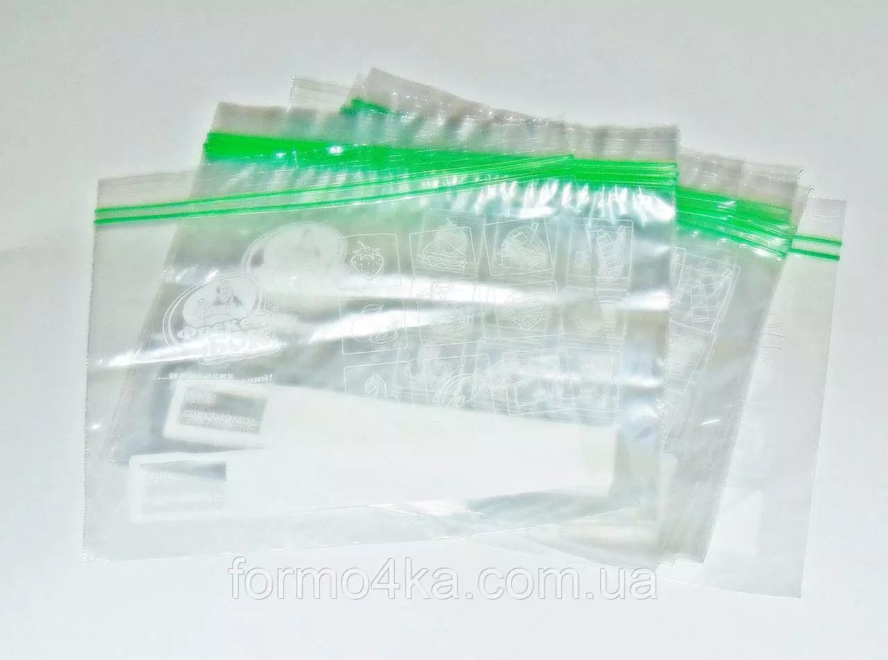 Характеристики: Пакеты изготовлены из прочного полиэтилена толщиной 35 мкм. Для удобства использования на пакете-зиппере есть специальные области для записи даты упаковки и информации о содержимом.