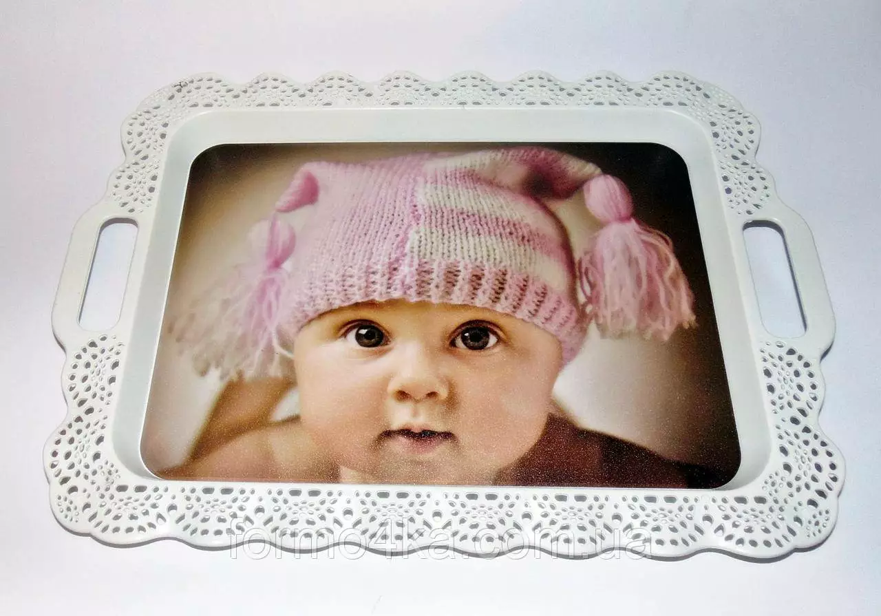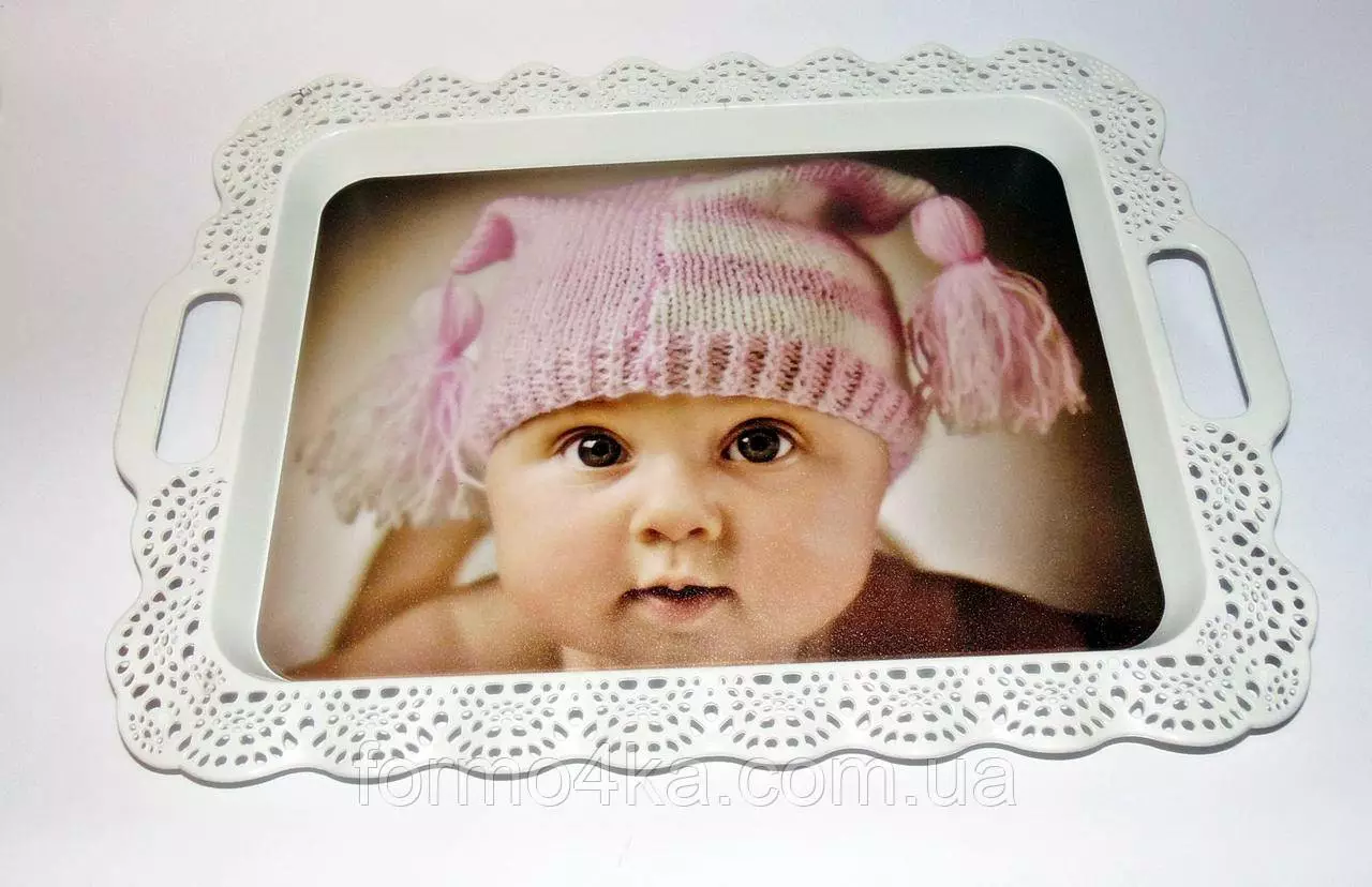 На поверхности подноса красочные рисунки разной тематики
