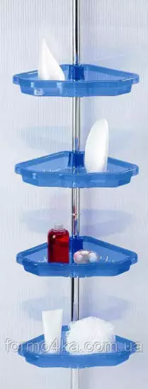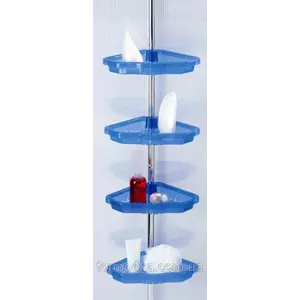 N17 Комплект угловых полок (4 полки 25*25 см, регулируемые по высоте, с отверстиями для слива воды) на телескопической алюминиевой трубке 135-260см. Установка враспор (не требует сверления). Материал: ударопрочный пластик, алюминий. Цвет: голубой.