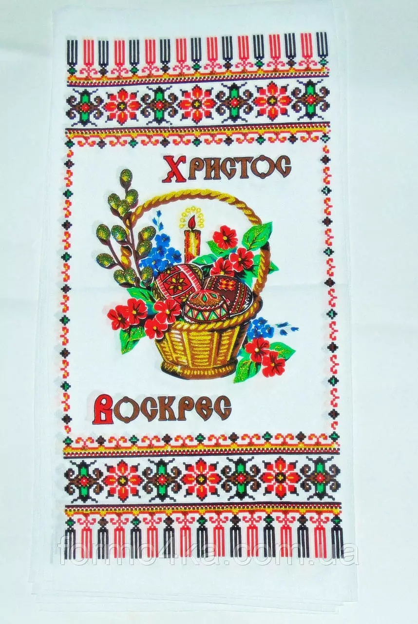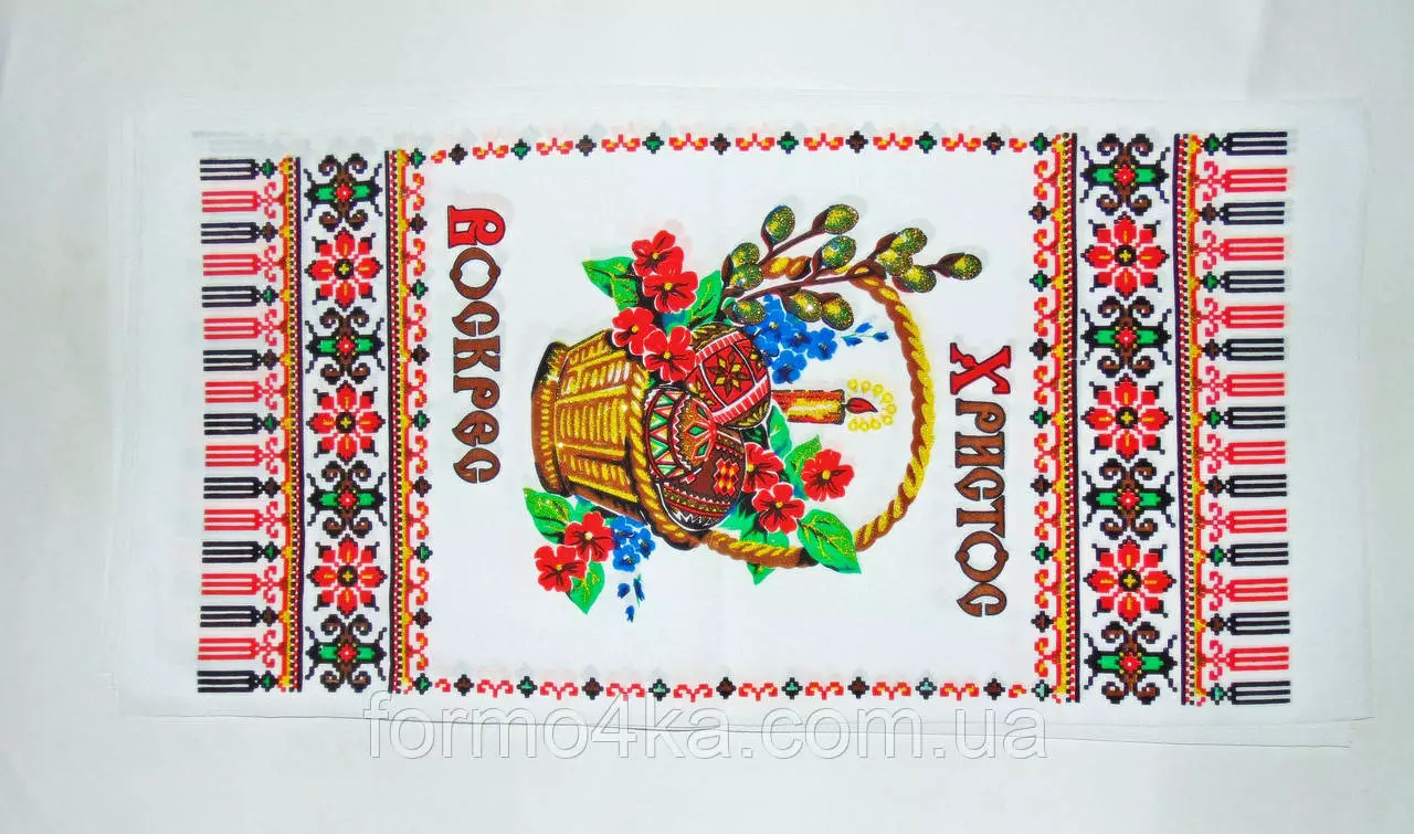 Цвет -белый, с орнаментом по краям, рисунок - пасхальная корзина