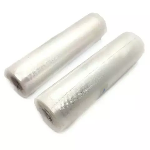 Вакуумная пленка в рулонах позволит вам отрезать пакет любой длины. Рифленая пленка пищевая подходит для варки, СВЧ, заморозки до -40С, к тому же его можно использовать как пакеты для сувид.