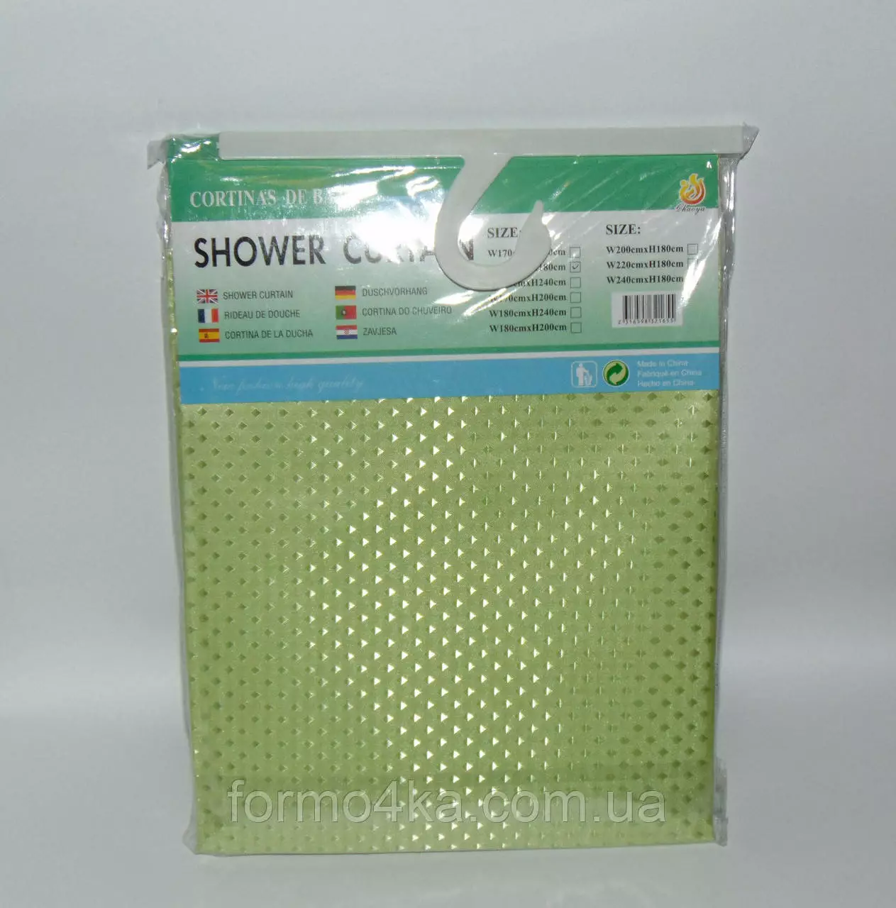 Штора для ванной тканевая однотонная салатовая