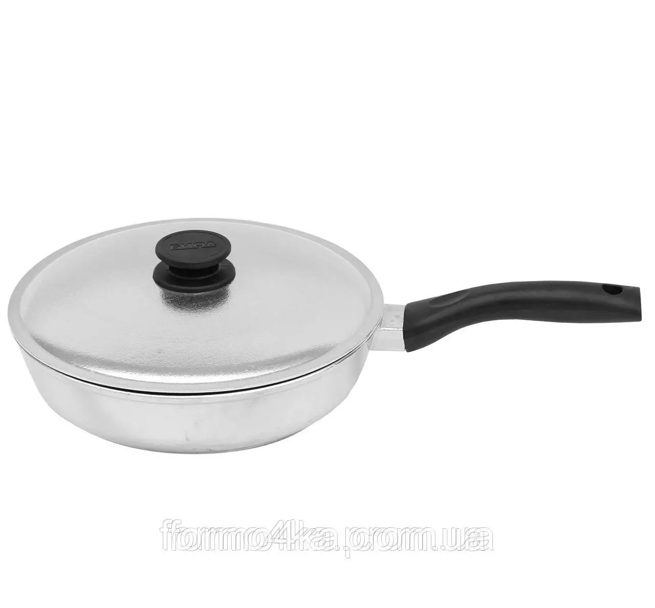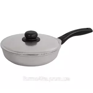 Сковорода с пластмассовой ручкой и крышкой, диаметр 240 мм, высота 110 мм, толщина дна 6 мм, толщина стенок 3,3 мм
