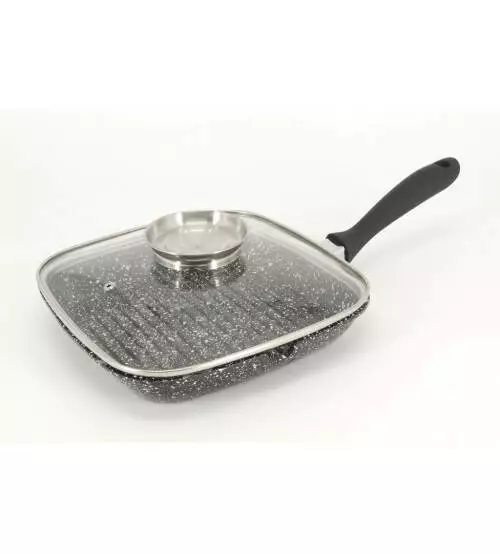 Сковорода гриль со стеклянной крышкой с мраморным покрытием