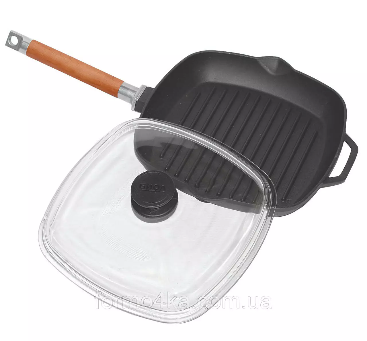 Сковорода-гриль чугунная 26х26 см со стеклянной крышкой