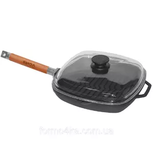 Сковорода-гриль чугунная 28х28 см со стеклянной крышкой