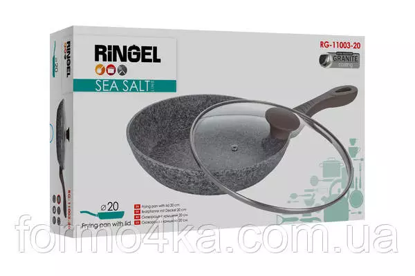 доукомплектовать свой кухонный арсенал. Сковородки серии Sea salt имеют устойчивое гранитное антипригарное покрытие, которое является достаточно износостойким даже при интенсивном использовании. Благодаря этому покрытию Вы можете свести к минимуму использование масла и готовить блюда из естественной карамелизации, путем равномерного прогревания, пища готовится одинаково на всей поверхности сковородки, при этом поверхность не перегревается и покрытие не разрушается. Благодаря стойкости покрытия допустимо использование металлических аксессуаров. С момента появления на рынке гранитное покрытие зарекомендовало себя отличными потребительскими свойствами: устойчивостью к механическим повреждениям, экологичностью, удобством использования и ухода. Для гранитного покрытия характерна окраска от светло до темно-серого, фактурное на ощупь.