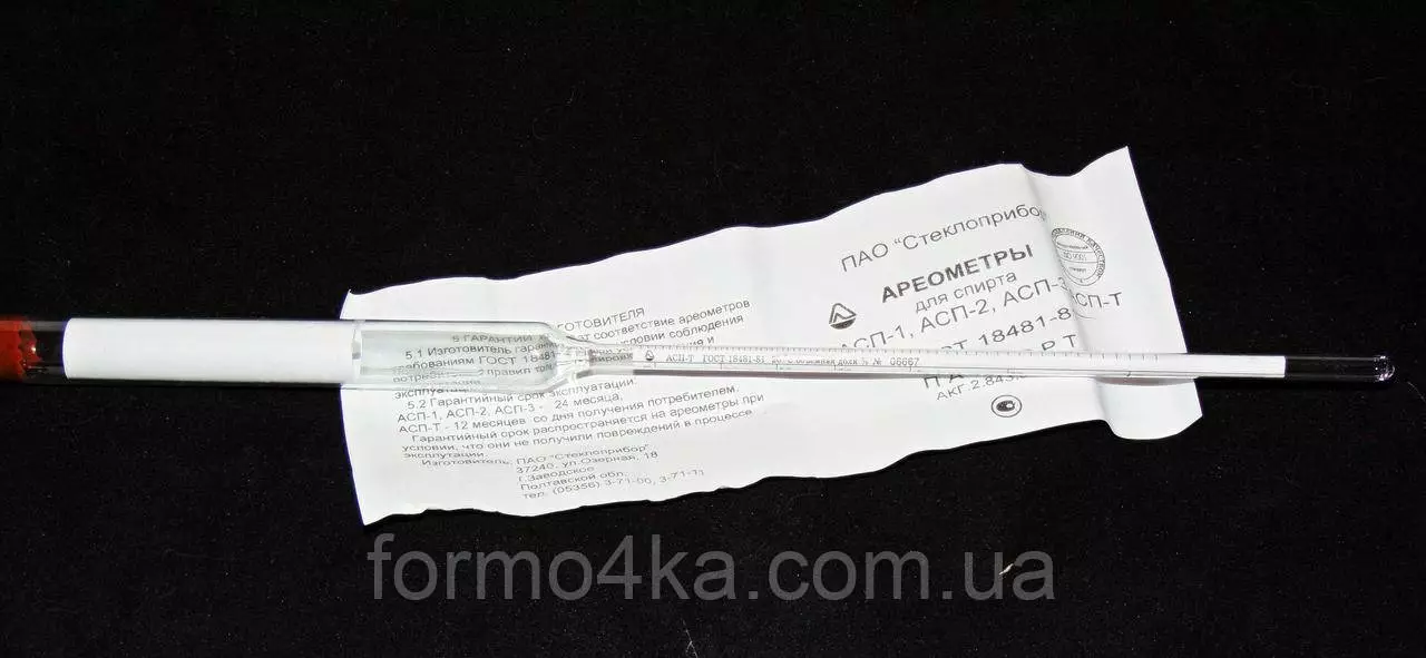 Ареометр для спирта с термометром АСП-Т (0-60%) применяется для измерения концентрации этилового спирта в водно-спиртовых растворах. Диапазон измерения в объемных процентах (градусах крепости) от 0 до 60%. Профессиональный спиртомер с термометром АСП-Т позволяет одновременно контролировать температуру измеряемой жидкости в интервале от -25°С до +35°С, что значительно облегчает процедуру определения крепости. Термометр расположен в нижней, расширенной части ареометра.