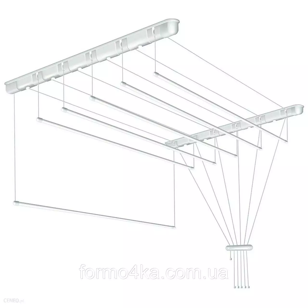 Сушка для белья потолочная с веревочным механизмом опускания планок.
