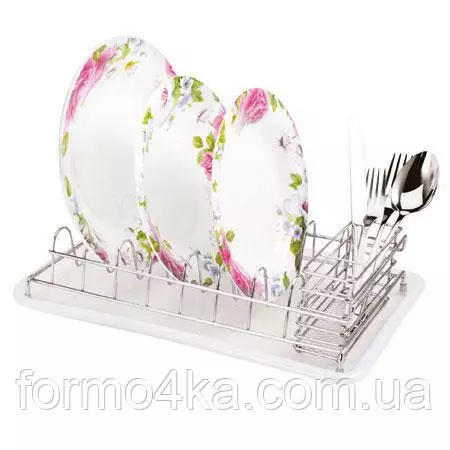 Cушилка для посуды одноуровневая: - сьёмный пластиковый лоток, - хромированная поверхность