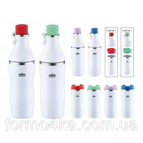 Термокружка с 2 крышками. Можно использовать как термо-бутылку или как термокружку.