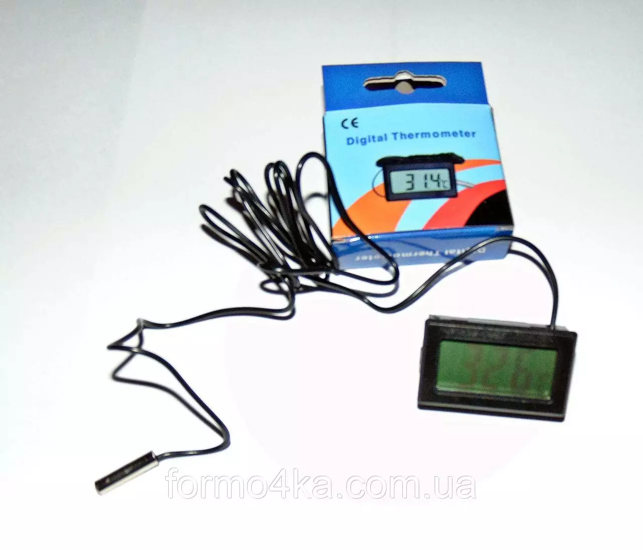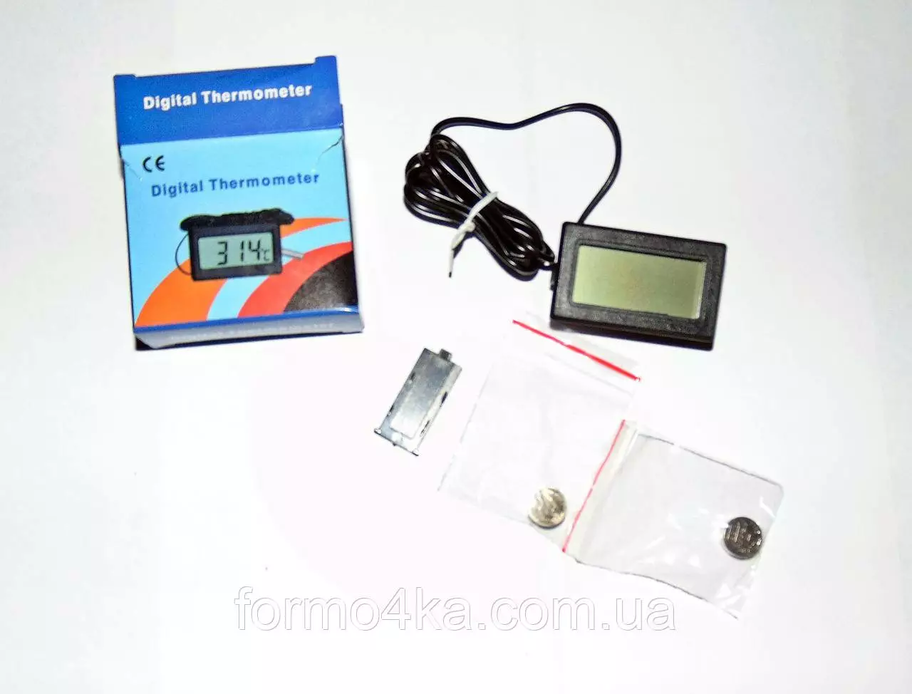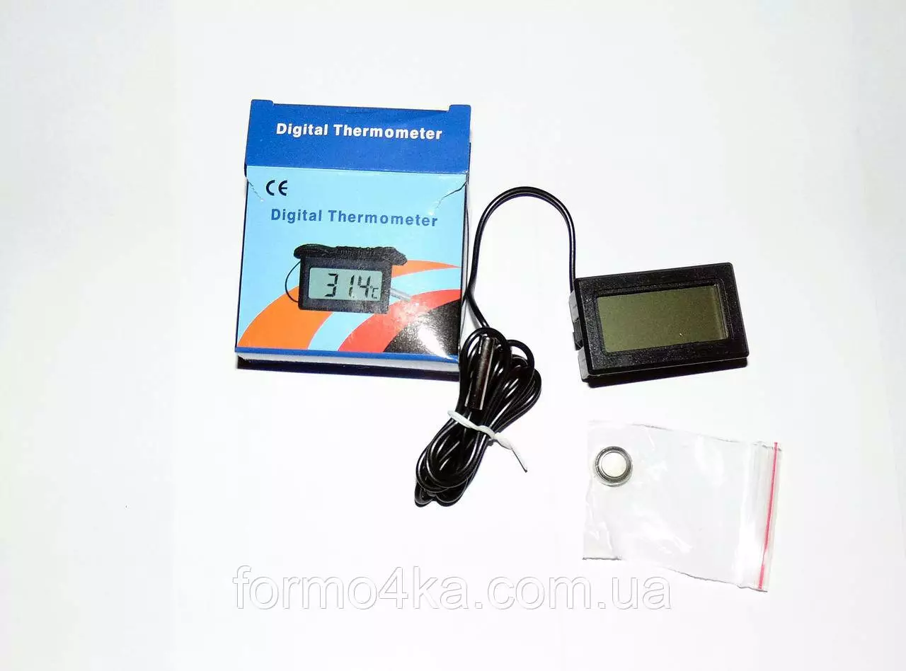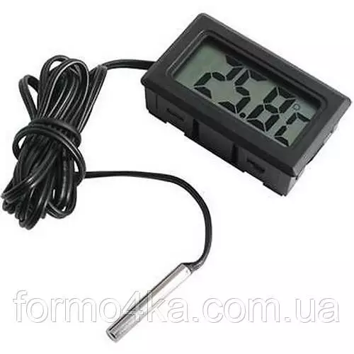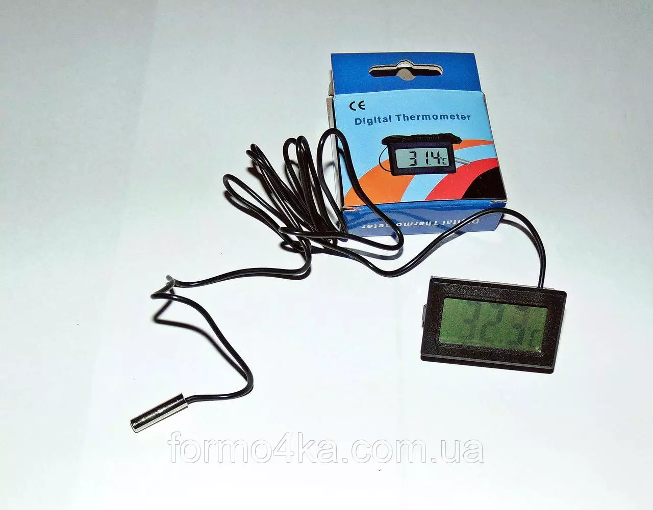 Имеет широкий диапазон измерения температуры от -50°C до + 110°C, компактный корпус из ABS пластика. Для удобства монтажа корпус врезного типа, что позволяет вмонтировать прибор в мебель или автомобильную панель приборов. Имеет четырехзначный цифровой LCD дисплей и выносной датчик температуры с метровым проводом. Работает цифровой термометр WSD-10 от двух батареек LR44\AG13(таблеток).