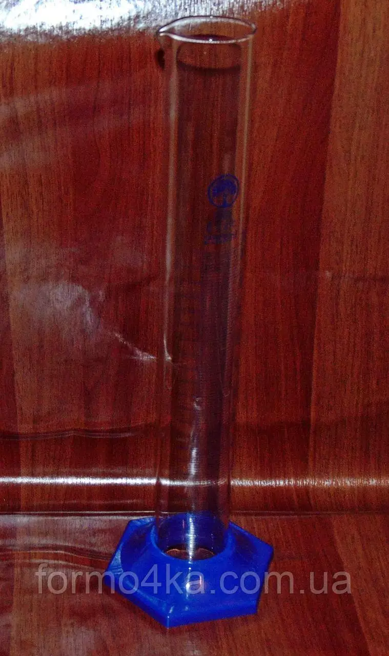Горловину снабжают носиком, чтобы потом было удобно слить жидкость. Для того, чтобы цилиндр был устойчив на столе, его вставляют в широкую (шестигранную) пластиковую подставку.