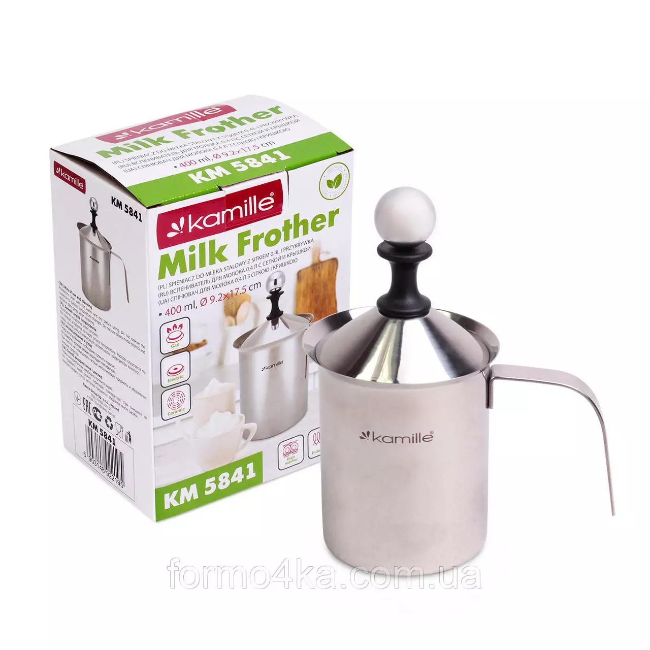 Предназначен для производства пены для кофе со взбитыми сливками. Имеет простой и удобный дизайн. Специальный край позволяет легко наливать вспененное молоко, не проливая. Можно мыть в посудомоечной машине. В таком кувшинчике получается любимая всеми пенка и фирменная воздушная консистенция латте либо капучино. Удобный носик позволяет наполнять чашки, не разливая при этом содержимое, поддерживая рабочее место в чистоте. С помощью капучинатора можно создавать истинные шедевры кофе-арта – рисунки взбитым до воздушной консистенции молоком прямо в чашке капучино, латте и т.д.